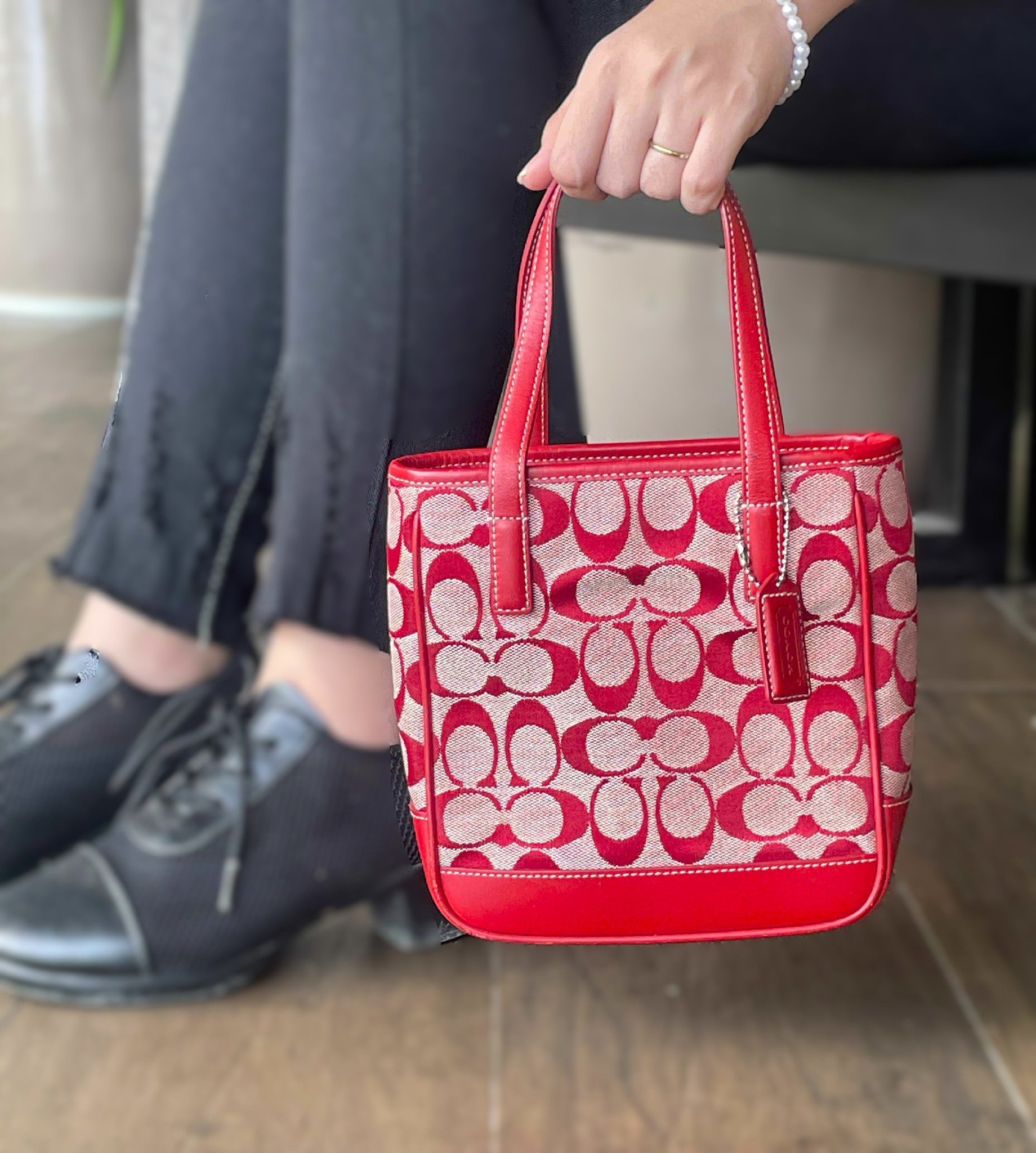 Pre-owned Brand: Coach Mini Lunch Tote Red Monogrammed Canvas Model: Mini Lunch Tote Red Monogrammed Canvas